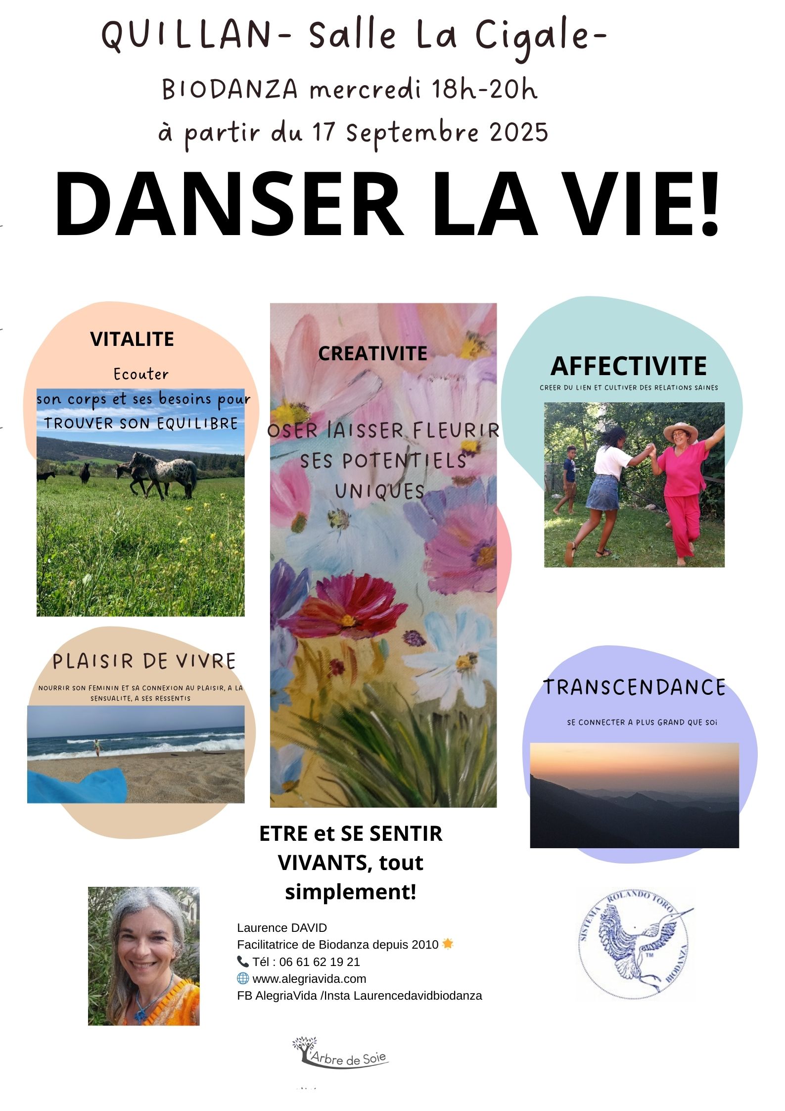 - Atelier hebdo Biodanza adultes à la salle La Cigale (11500 Quillan) mercredi de 18hà 20h. Avec l’association L’Arbre de Soie. Cours ouvert aux débutants en cours d’année. Merci de me contacter 06 61 62 19 21.